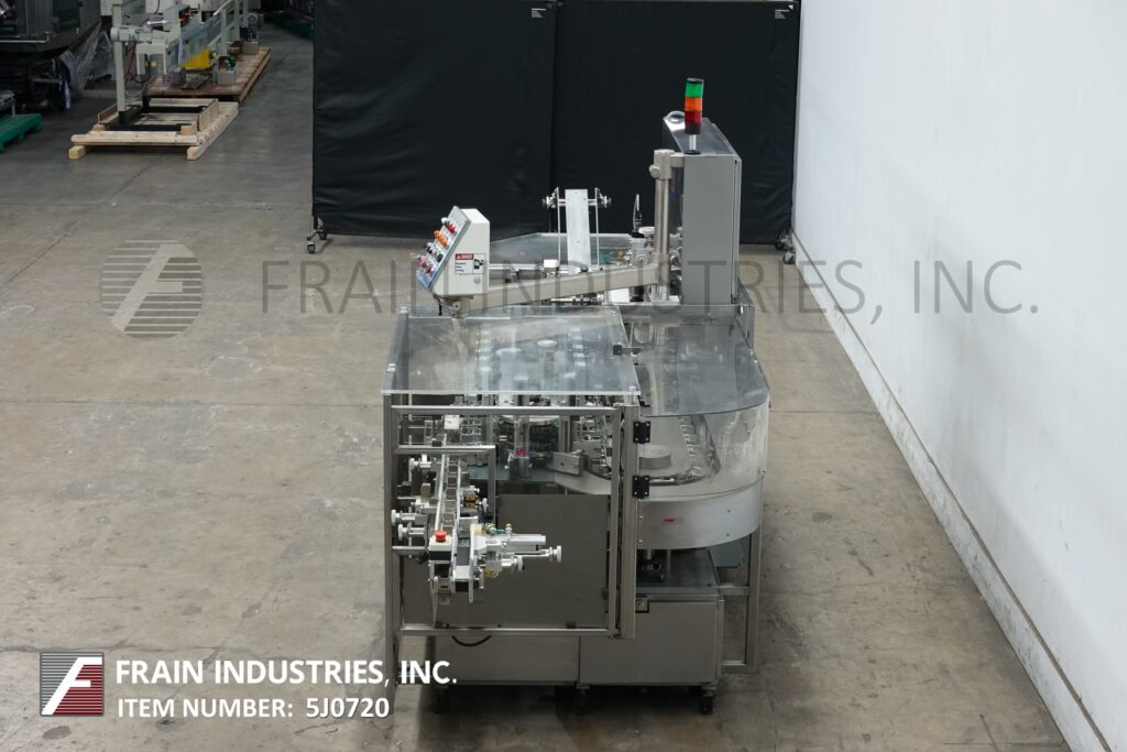 Back to All EquipmentTisma, Model TC-50E, Semi-automatic, vertical, hand load cartoner rated from 25 to 150 cartons per minute – depending on materials, application and operator dexterity. Carton size range: per application. Equipped with (2) chain fixed, set on 5" centers, with 33" long (2) chain automatic blank carton magazine (2) head rotary pic-n-place, 48" long hand load area with operator e-stop each side. Control panel has start, jog and e-stop push buttons with statis light bar. Mounted on heavy duty frame with interlock safety guarding.