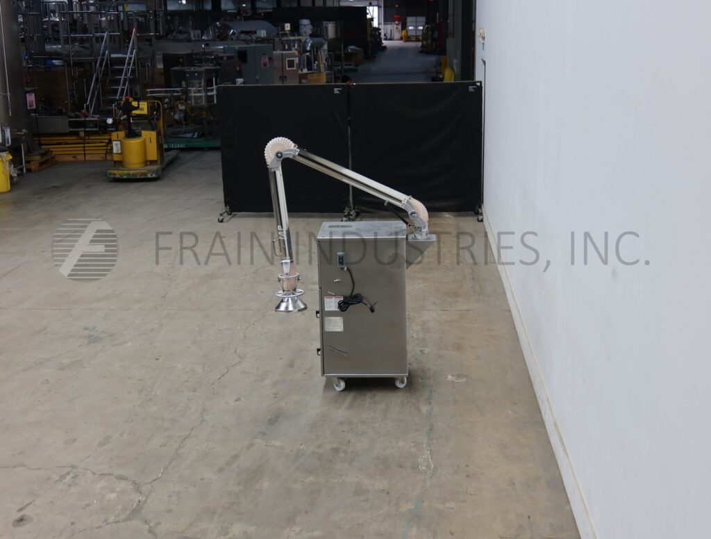 Torit Model 70, Cabinet style, self contained bag house dust collector rated from 175 to 550 scfm – depending on materials and application. Holds (24) cartridge filters, total filter media area: 120 ft², 1 Hp blower motor, manual shaker pedal and 84" flex arm with 4" ID / 10" OD inlet and 7" x 3" blower outlet.