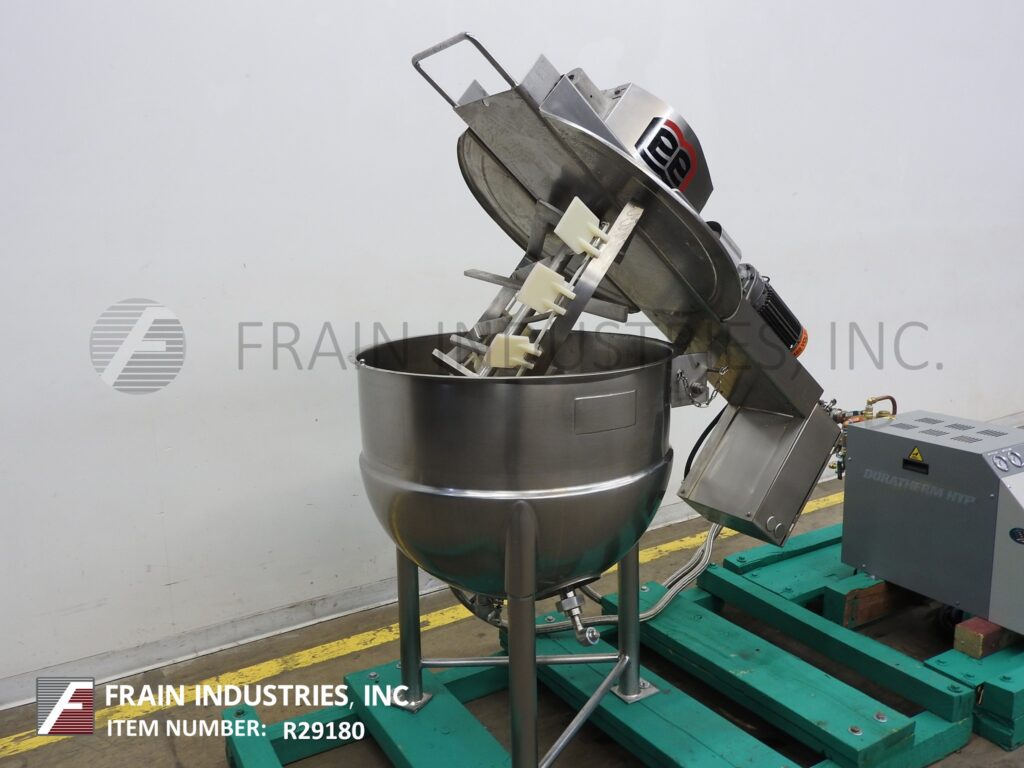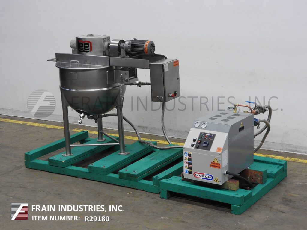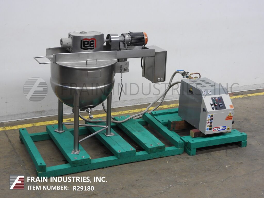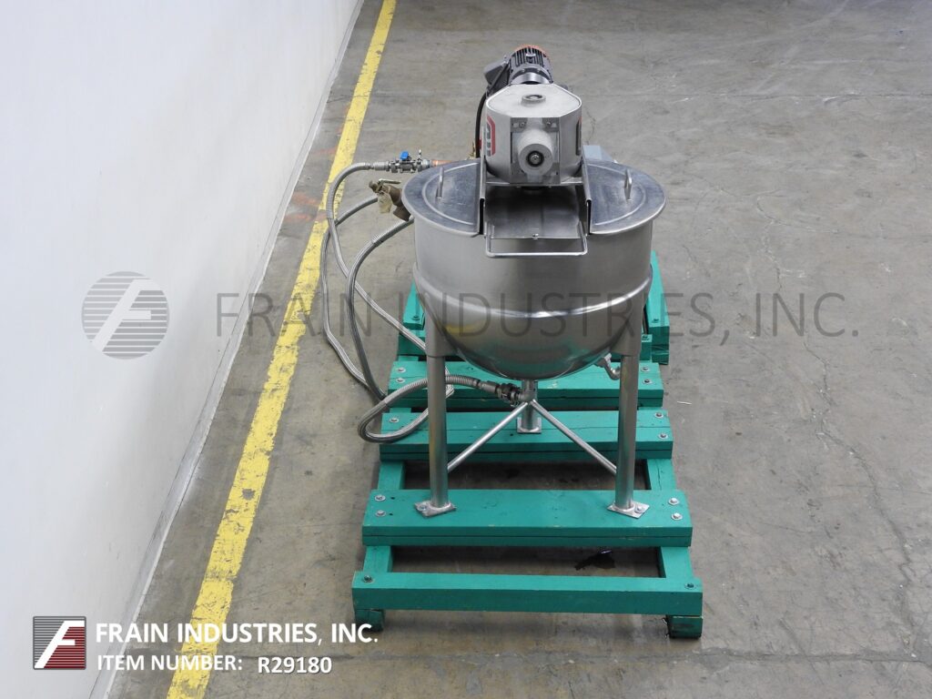 Back to All EquipmentLee, 50 gallon, 304 stainless steel jacketed kettle. Vessel Dimensions: 32" diameter x 22" deep with a 10" straight wall. Equipped with a bridge mounted scrape agitator powered by a single 2 Hp drive, flush mount sensor, bottom feed port with backflow valve and 2½" OD / 2"ID tri-clamp style discharge with butterfly valve and 7" ground clearance. Mounted on (3) tubular leg frame.
