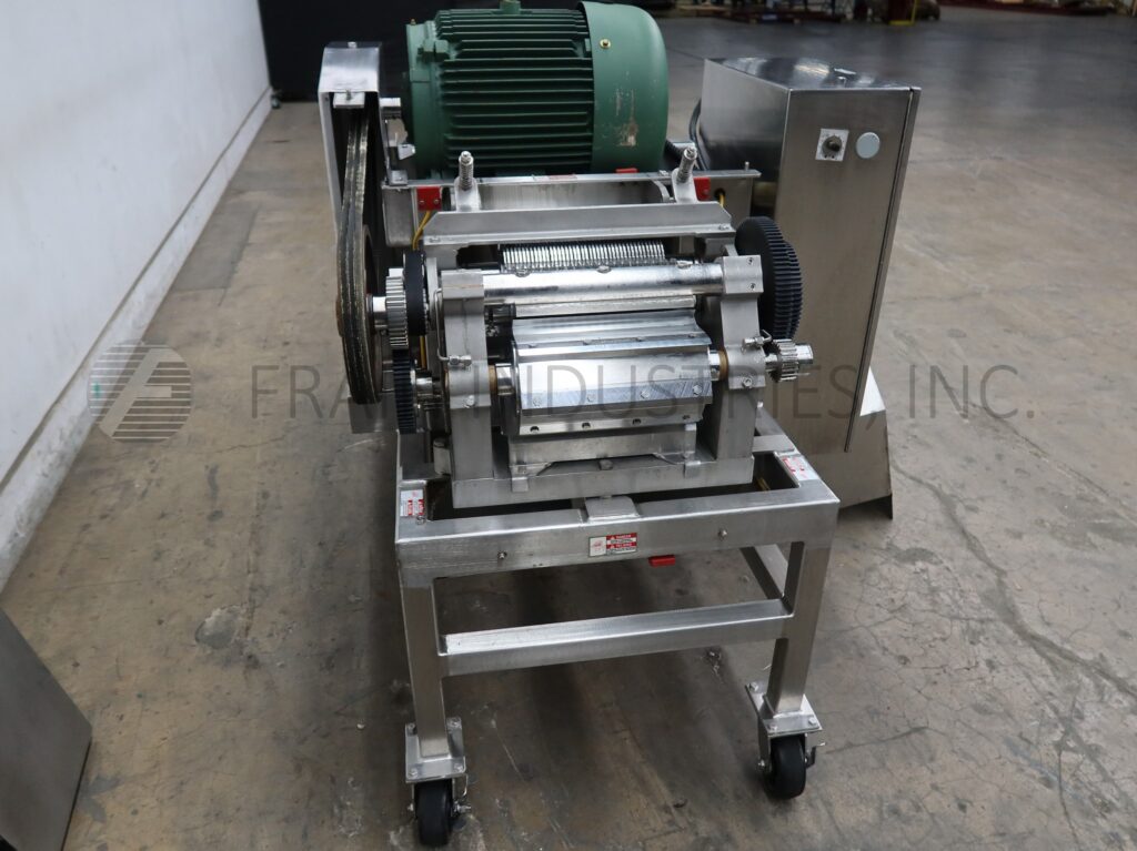 Back to All EquipmentUrschel, Model M, stainless steel, belt fed, dicer, shredder and strip cutter. Capable of production rates from 500 to 4,500 lbs per hour – depending on materials and application. Capable of strip cuts from 3/16" to 3" and cross cuts from 1/8" to 4". Equipped with 29" x 9½" load area on feed belt and 11½" x 16" discharge chute with 16" ground clearance. Control panel with start and stop push buttons controls. Mounted on (4) leg stainless steel frame with casters.