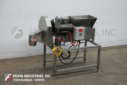 Back to All EquipmentUrschel, Model OV slicer for uniform crosscut slicing of elongated food products with pounds of product per hour – depending on materials and application. Equipped with 48" long v-belt in feed, 2½" wide product hold down belt and 7" OD discharge with 31" ground clearance. Will accommodate products up to 2¾" OD and capable of flat or crinkle slices and will produce flat slices from 1/16" to 1¾" thick. Change parts are required to accommodate size / cut range.