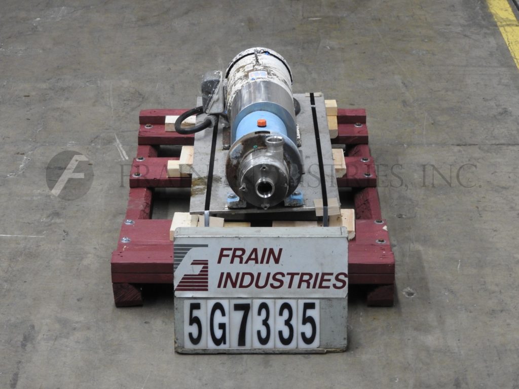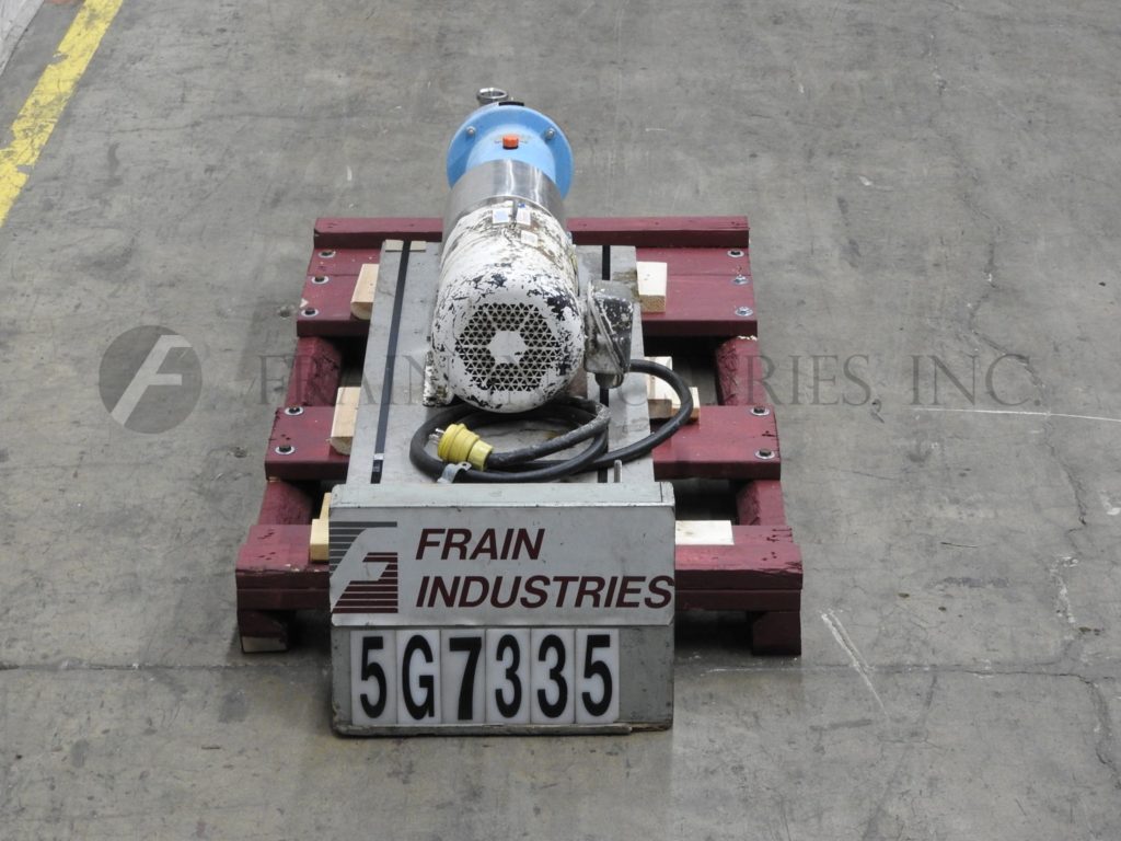 Back to All EquipmentWaukesha Model SP4, stainless steel, high shear, positive displacement pump and emulsifier. Rated from 1 to 30 gallons per minute – depending on materials and application. Equipped with a 2½" OD / 2" ID seated beval top and front inlet / outlets, temperature range from 0 to 300 Deg F and pressure ratings up to 150 psi and can handle product up to 1,000,000 cps depending on product, modular, interchangeable stators and rotors for versatile and compact processing. Mounted on platform style base.