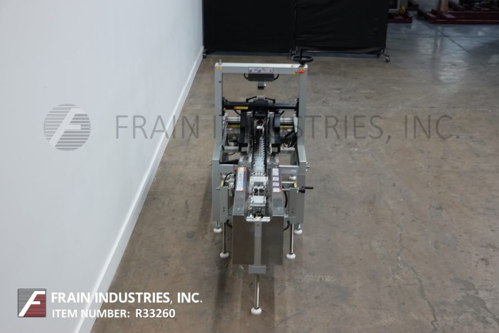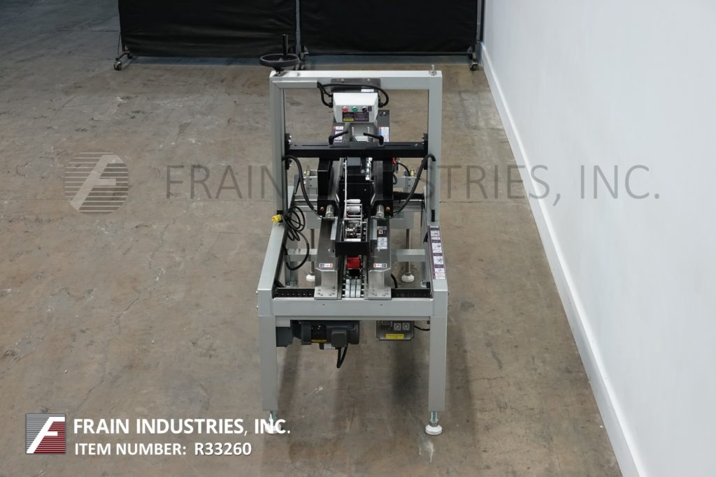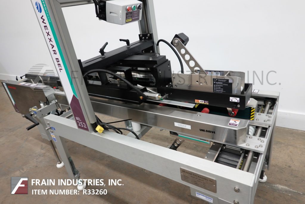 Back to All EquipmentWexxar / Belcor, Model 505 / 252 uniform, semi automatic case erector / pack station with top and bottom case taper. Rated from 5 to 25 case per minute – depending on materials, application and operator dexterity. Case size range: 8" to 22" in Length; 6" to 15½" in Width; 5" to 15¾" in Height. Equipped with Belcor Model 505 manual case erector top case packer to Model 252 top / bottom case taper with side snap flap folders, 58" long by 3" wide side case transfer belts, top / bottom 2" tape heads, hand crank height and width adjustable, Control panel with start, stop, e-stop push button controls. Mounted on (4) leg height adjustable base frames with locking casters.
